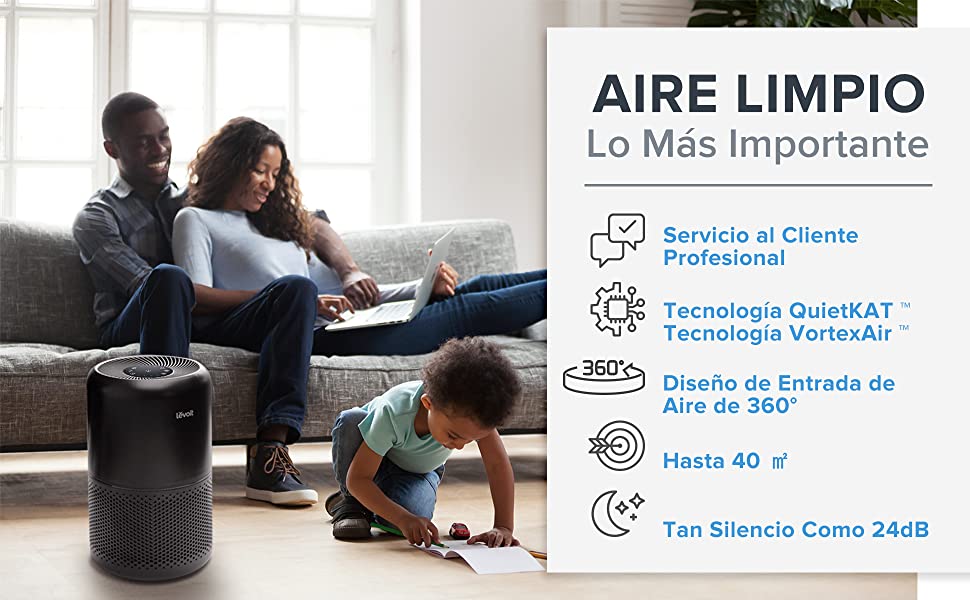 Otra opción es el Purificador de Aire LEVOIT con Filtro HEPA H13 y Carbón Activado, LV-H132.