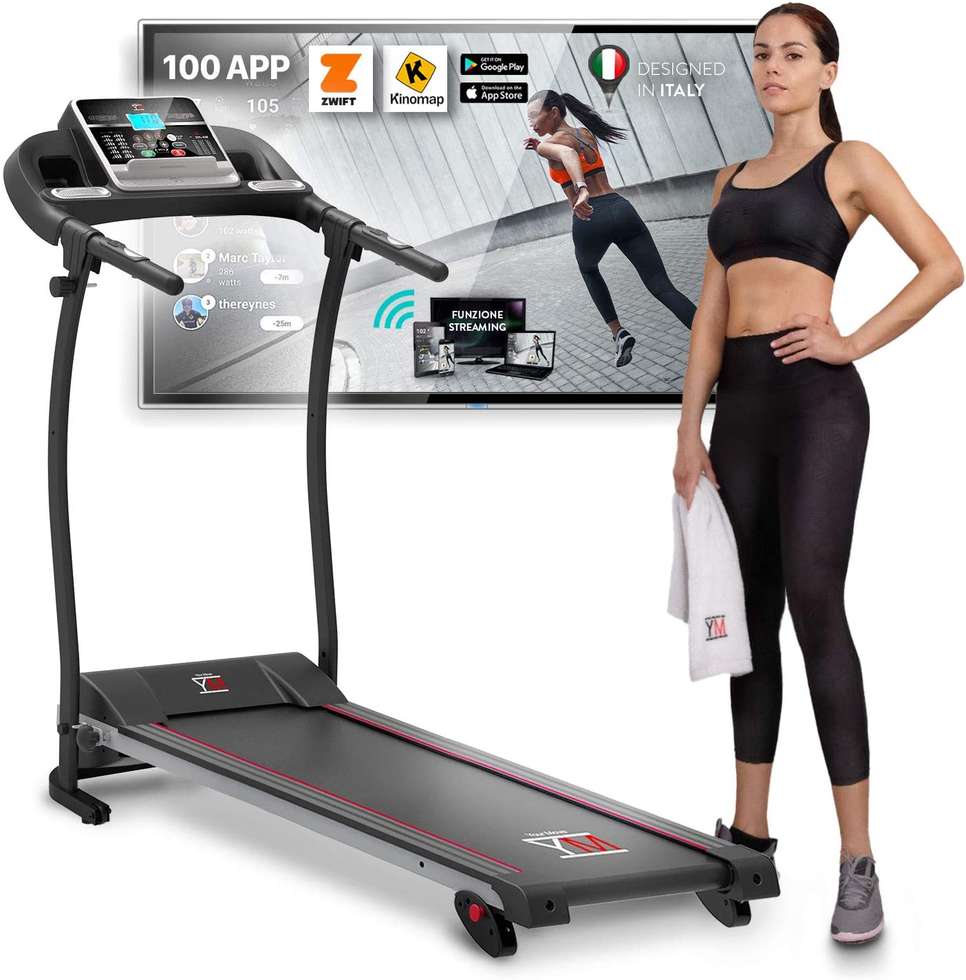 Esta cinta de correr plegable te permitirá realizar un ejercicio intenso pudiendo alcanzar una velocidad regulable hasta 20 km/h. Con un motor de 5 CV de potencia máxima. Dispone de consola multifuncional provista de una espectacular pantalla táctil de 15,6″ donde podrás visualizar toda la información que necesitas: velocidad, distancia, tiempo, inclinación, consumo calórico, pulso, etc.